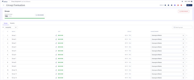 - Create groups by dividing students equally at random or manually, via self-enrolment, or by importing groups from a file.