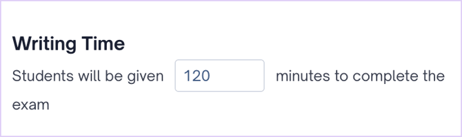 If Auto submission is off, you can specify a period of time to accept late submissions. Students will be prompted to submit at the end of their allocated writing time, but can choose to continue working and submit late. Once the late submission time allowance has passed, students cannot continue working and will be prompted to submit again.