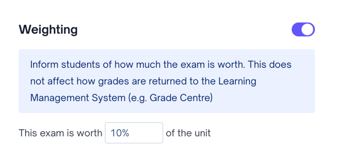 This doesn’t affect how grades are returned to the marking tool— it will only be seen by students in their exam instructions.
